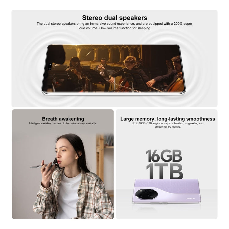 Honor 100 Pro, 16GB+1TB, Screen Fingerprint Identification, 6.78 inch MagicOS 7.2 Snapdragon 8 Gen 2 Octa Core up to 3.19GHz, Network: 5G, NFC, OTG, Support Google Play(Purple)