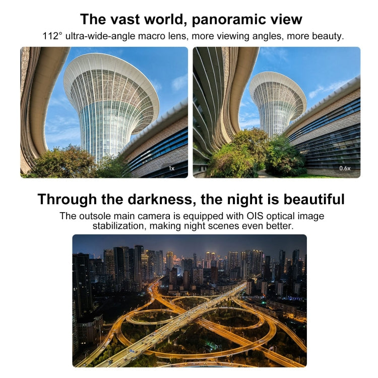 1. Dual Rear Camera: 50MP IMX906 SLR-level photo main camera (f/1.95 aperture, supports OIS optical image stabilization) + 12MP 112-degree ultra-wide-angle macro lens (f/2.2 aperture)+ 32MP 50x telephoto optical image stabilization lens (f/2.4 aperture, support OIS optical image stabilization)