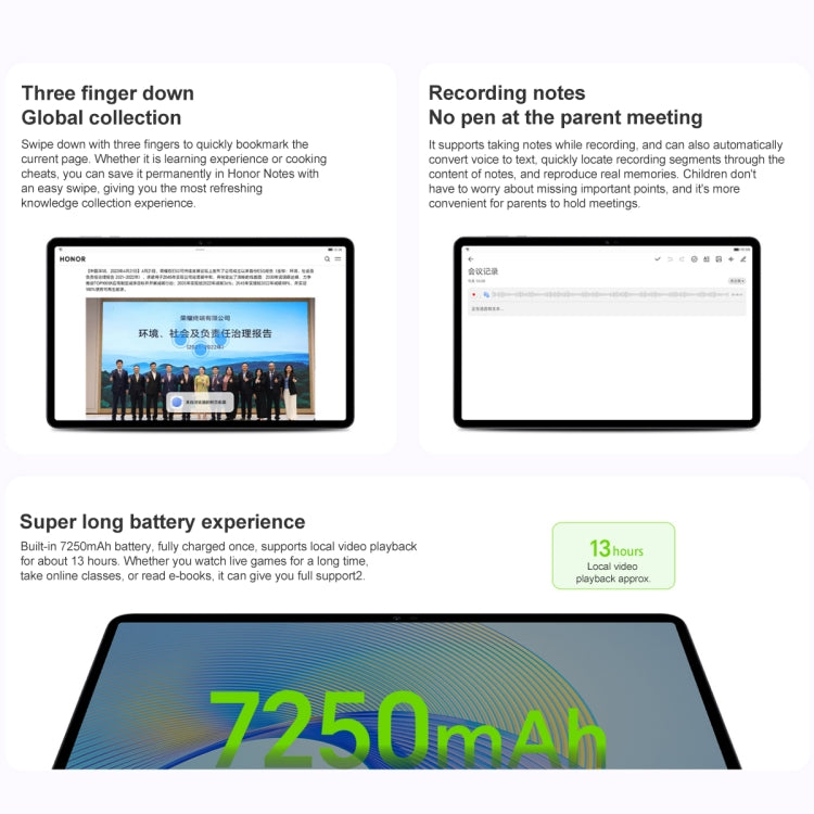 7. Features: Protection for use by minors, education center, parental remote control, multi-screen collaboration, Mobile message sharing, full screen collection, recording notes, etc.