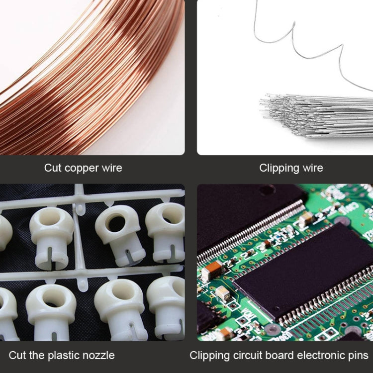 5. Use: suitable for cutting copper wire, cutting iron wire, cutting plastic parts of the water mouth, cutting circuit board electronic feet, etc.