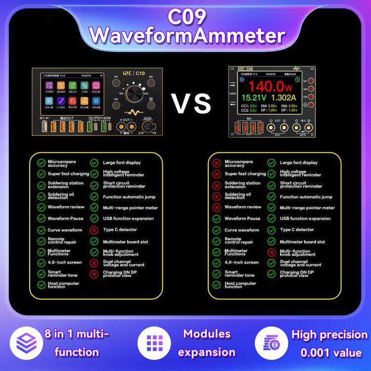 i2C C09 Charge Detection / Voltage Measurement Digital Waveform Ammeter, Model:Host