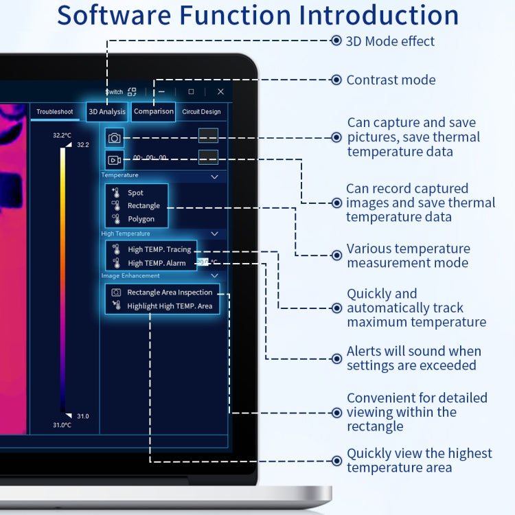 7. Rectangular Analysis Mode, You can view and compare the temperature of the area at the same time