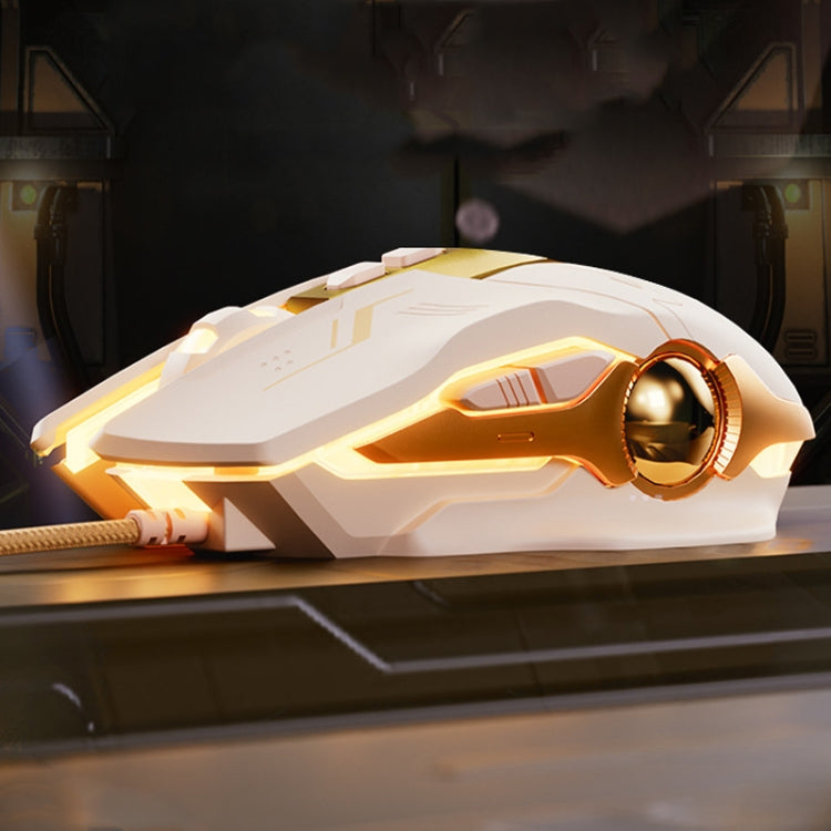 Inphic W8 Upgraded Wired Gaming Mice Macro Definition Light Emitting Mute Computer Mouse(Milk Tea Color)