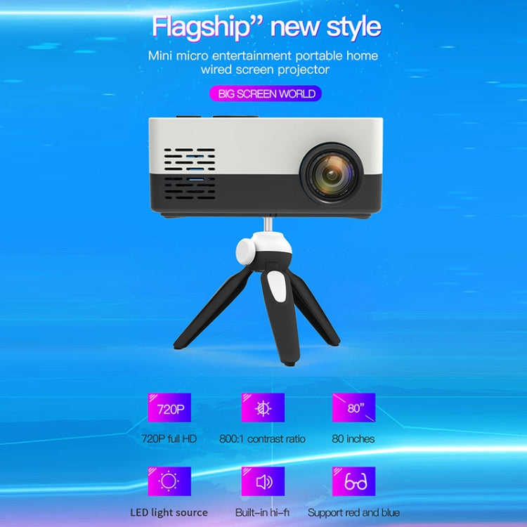 J15 1920 x 1080P HD Household Mini LED Projector with Tripod Mount Support AV / HDMI x 1 / USB x1 / TF x 1, Plug Type:UK Plug(Black White)