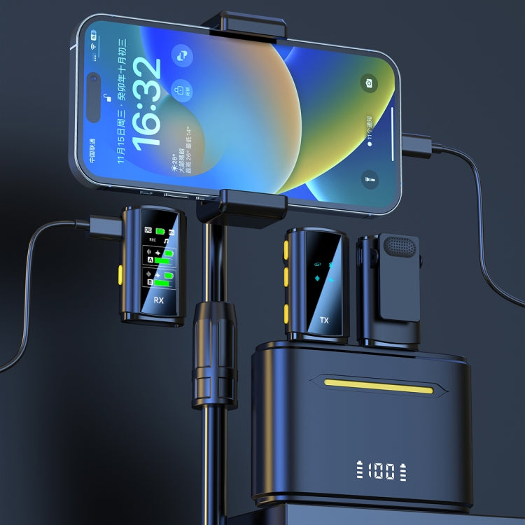 J28 1 TX + 2 RX Lavalier Smart Noise Reduction Wireless Microphone with Charging Compartment(8 Pin)