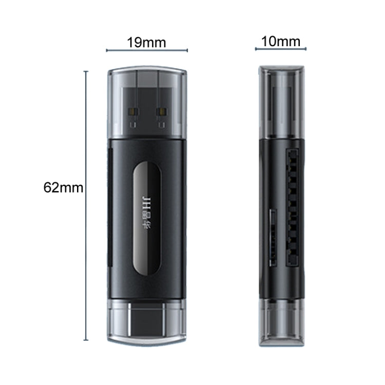 JINGHUA Type-C / USB2.0 TF+SD 2 In 1 Card Reader Multi-function Reader(Black)
