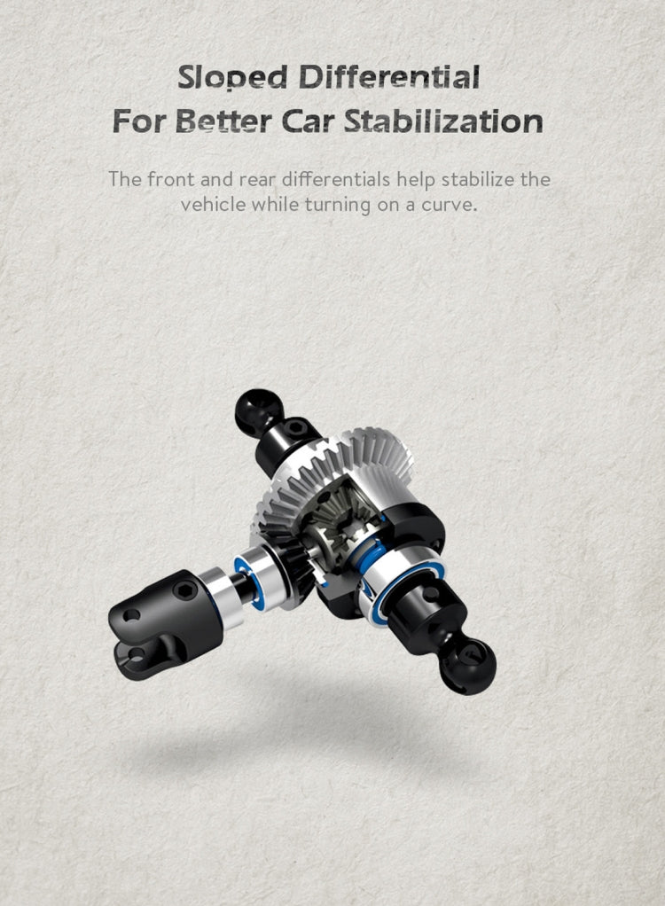 3. The front and rear beveled differential makes the turn more stable, allowing the car to move forward at a better speed.
