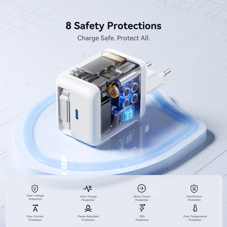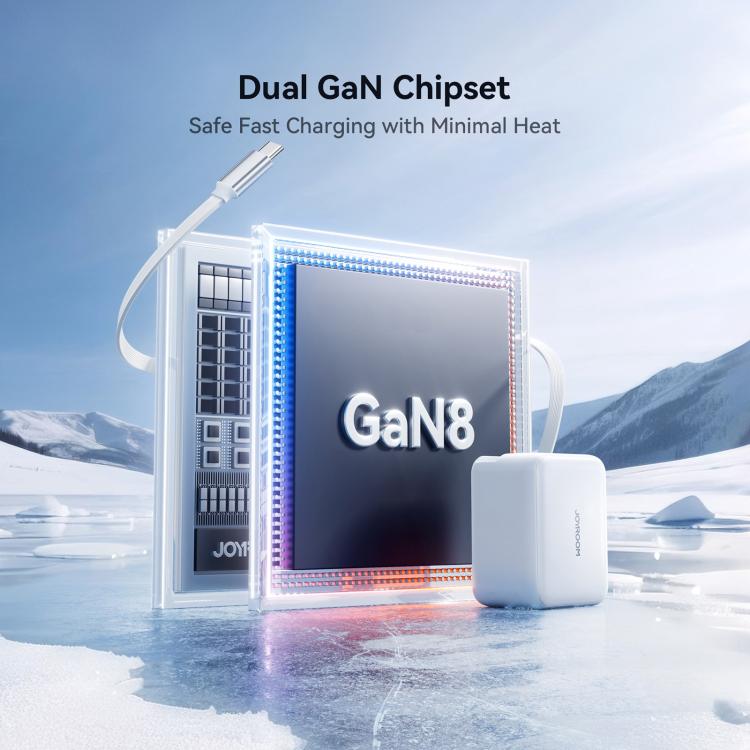 JOYROOM JR-TCL06 67W USB-C / Type-C Port GaN Fast Charger with Retractable Cable, EU Plug(White)