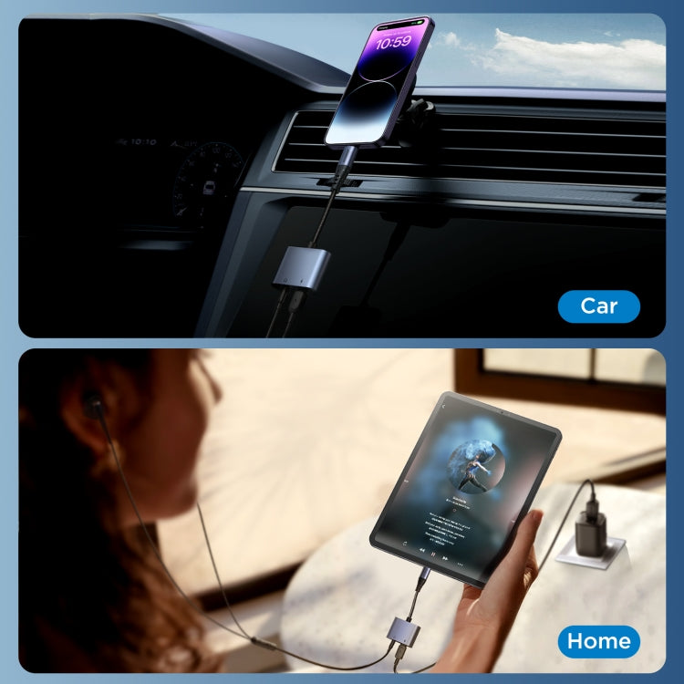 JOYROOM SY-L01 Transsion Series 2 in 1 8 Pin to 3.5mm+8 Pin Audio Adapter(Black)