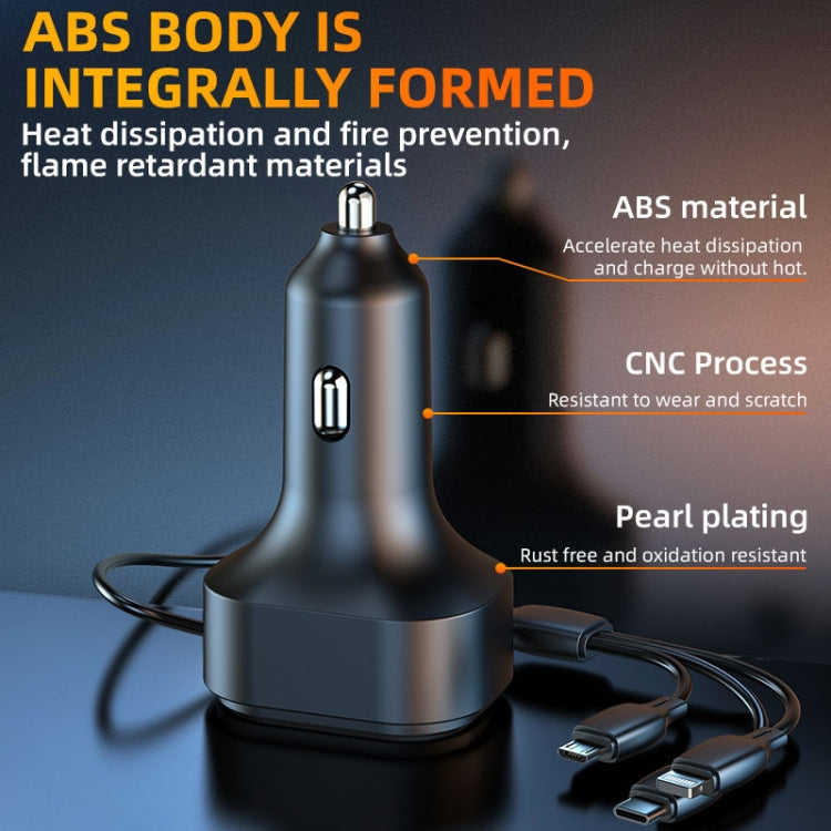 K5 With 3-in-1 Charging Cable Dual USB + 1 Type-C PD Phone Fast Charging Adapter Car Charger