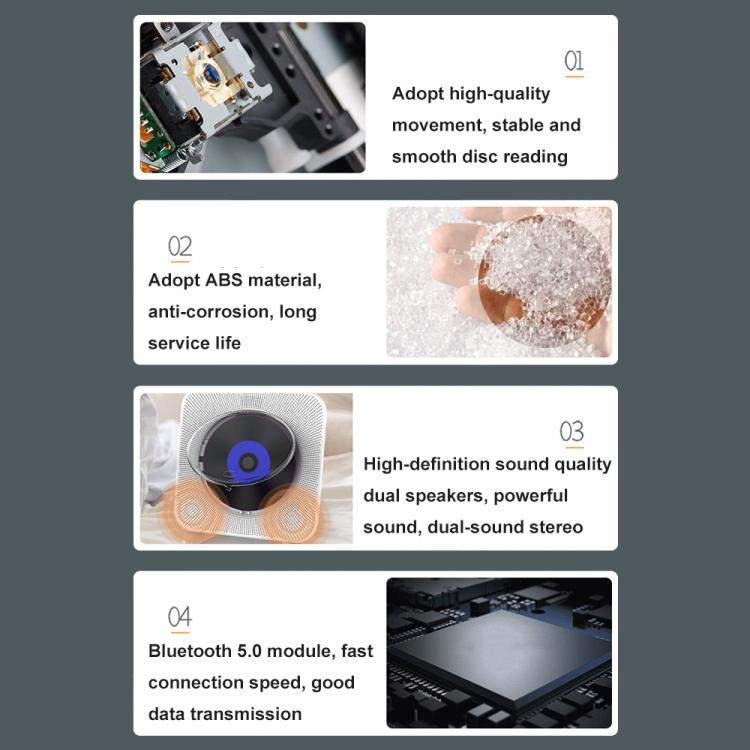 Kecag KC-807 Wall-mounted Home Retro Bluetooth CD Player, Spec: UK Plug(White)