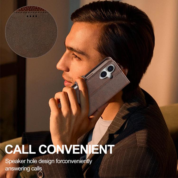 LC.IMEEKE Calf Texture Horizontal Flip Leather Case For iPhone 17(Brown)