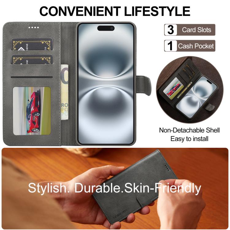 LC.IMEEKE Calf Texture Horizontal Flip Leather Case For iPhone 17(Grey)