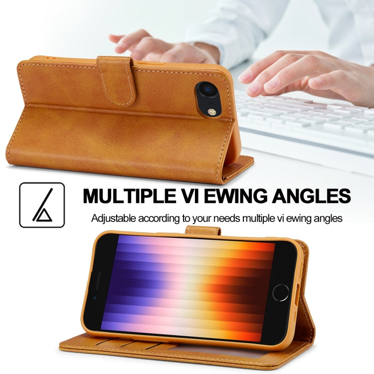 LC.IMEEKE Calf Texture Horizontal Flip Leather Case For iPhone 16e(Yellow)