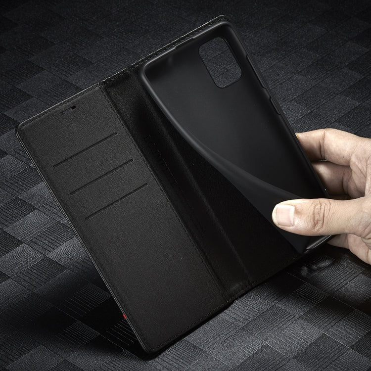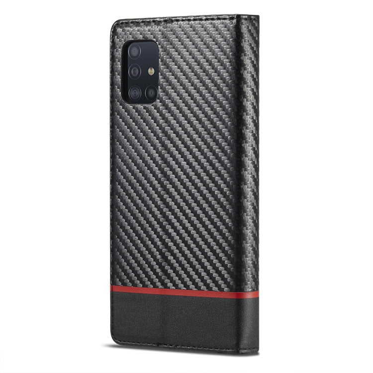LC.IMEEKE Carbon Fiber PU + TPU Horizontal Flip Leather Case with Holder & Card Slot & Wallet For Samsung Galaxy A71 4G / M70s(Horizontal Black)