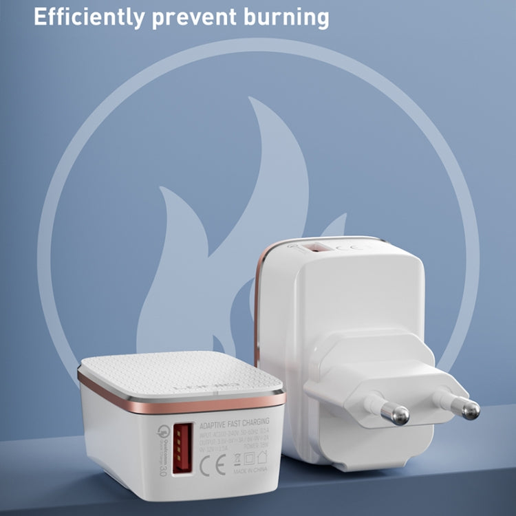 LDNIO A1204Q QC3.0 18W USB Fast Charger with 1m USB to USB-C / Type-C Cable, Plug Type:EU Plug(White Gold)