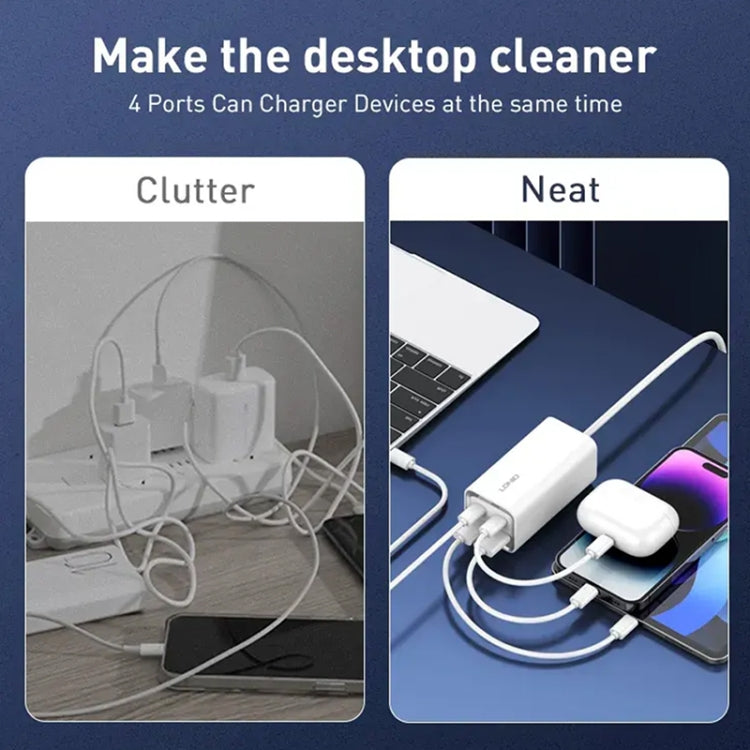 LDNIO A4610C PD65W Dual USB-C / Type-C + Dual USB Fast Charger, Cable Length: 1.5m, Plug Type:UK Plug(White)