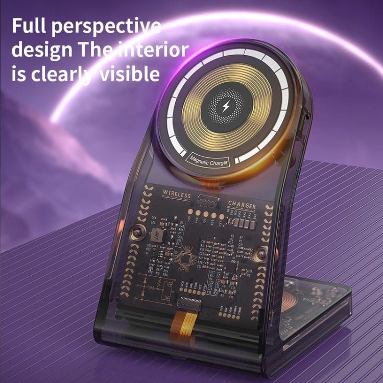 LFX-198 15W Transparent MagSafe Wireless Charging Stand with Removable Watch Charger(Gold)