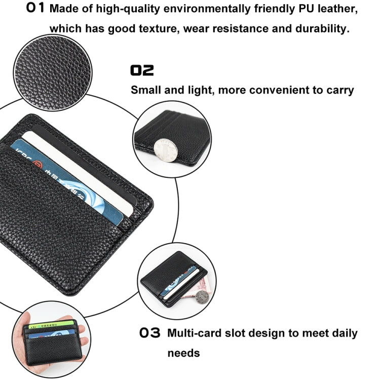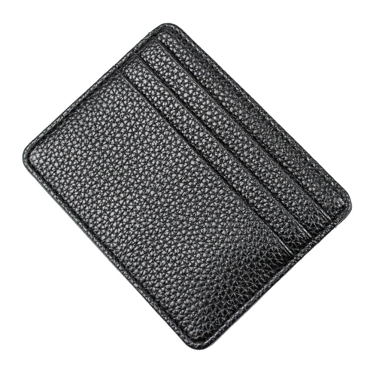 Lychee Pattern Multi-Card Slot Mini Card Holder Ultra-thin Coin Purse(Black)