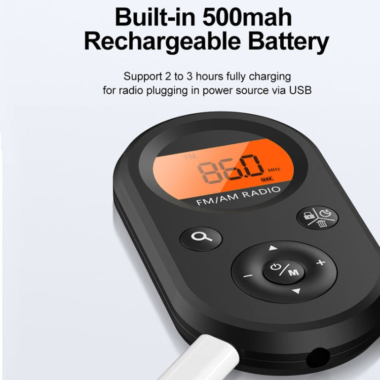 M01 Mini Portable Rechargeable FM / AM Radio With Backlight(Black)