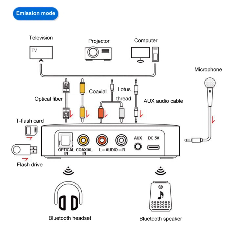 2. Bluetooth receiver, bluetooth transmitter 2-in-1