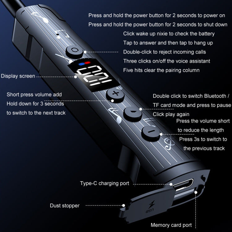 M226 Neck-Hanging In-Ear Pentatone Wired Sports Digital Display Bluetooth Earphone(Black)