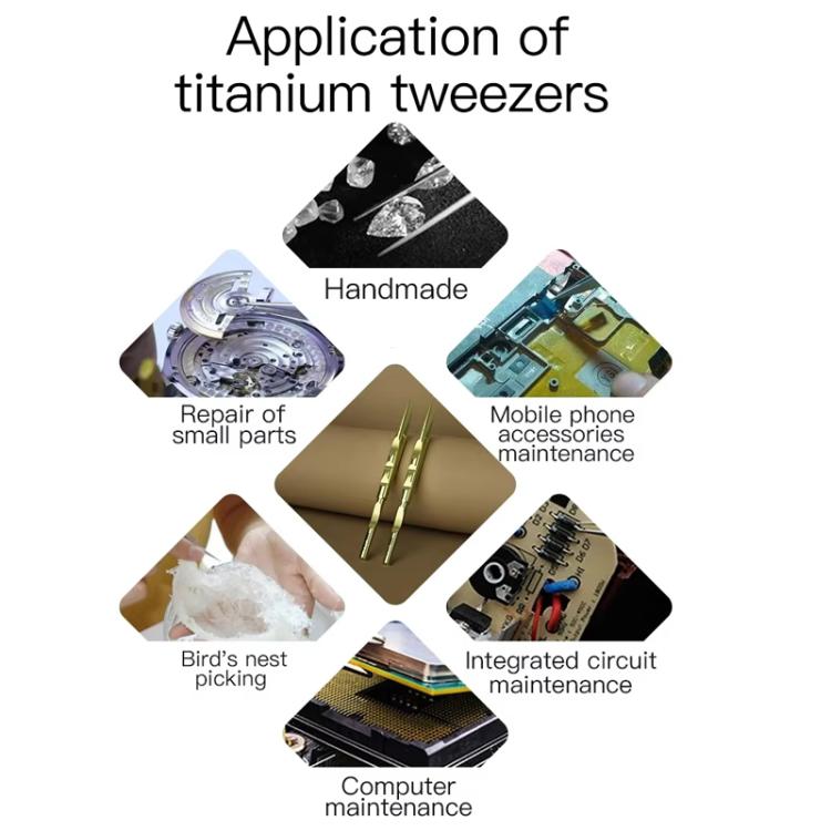 MaAnt Titanium Tweezers Antistatic Small Clip Bird Nest Hair Picking Pink Prick Clip Repair Tool(Curve)