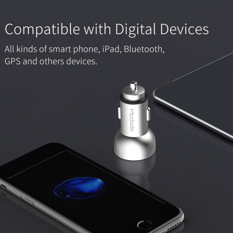 Mcdodo CC-3871 2-Ports USB LED Smart Digital Display Car Charger, For iPhone, iPad, Samsung, HTC, Sony, LG, Huawei, Lenovo, and other Smartphones or Tablet(Silver)