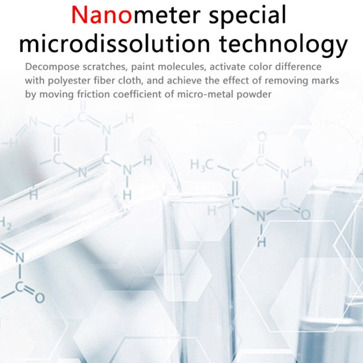 3. Nano special micro-dissolution technology, decomposition of scratches, paint molecules, polyester fiber cloth to move the friction coefficient of micro-metallic powder to activate the color difference, to achieve the effect of removing marks