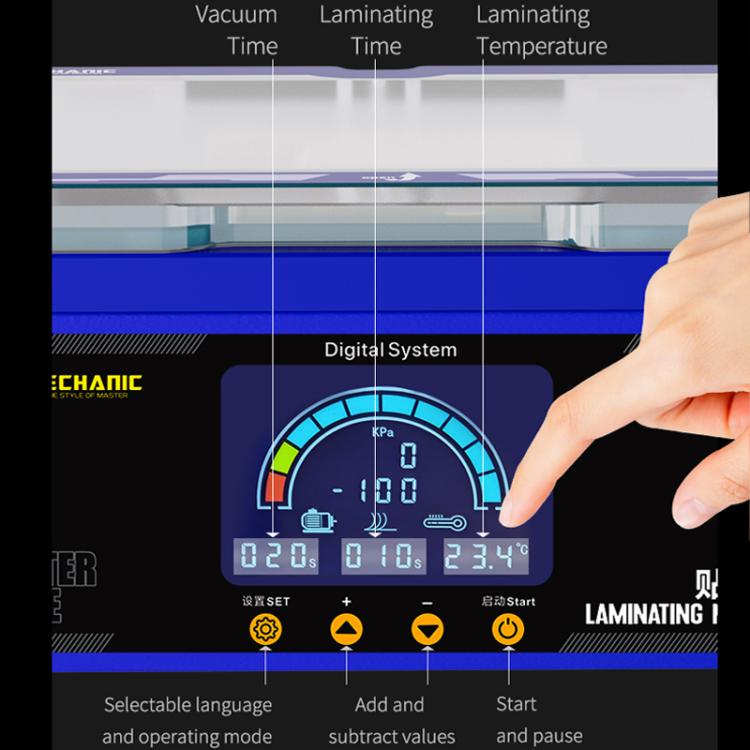 1. Airbag laminating machine for under 8-inch straight screen and curved screen, vacuum laminating all in one, transparent cover, the laminating process is clear at a glance