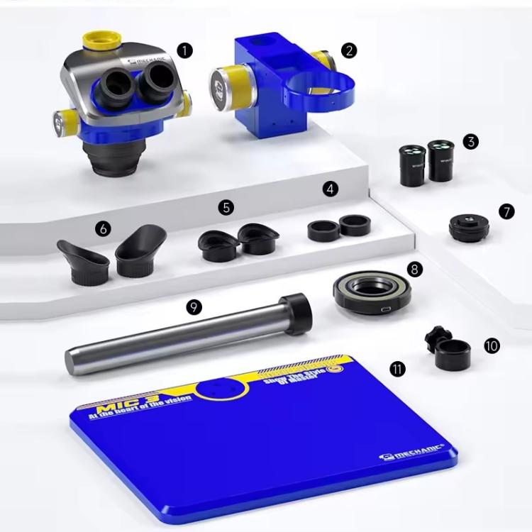 2. Mic 3 microscope with standard WF10X/25MM high field wide-angle eyepiece, the view is wide and the image is clear, whether it is a mobile phone motherboard, circuit board, or more precise and smaller chips, all you can have a full view