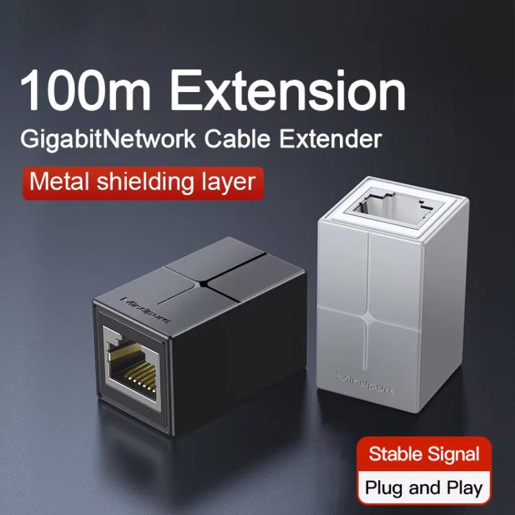 Mindpure AD043 2pcs Network Cable Pair Connector Extender Adapter RJ45 Network Gigabit Dual Pass-through Broadband Crystal Heads(White+Black)