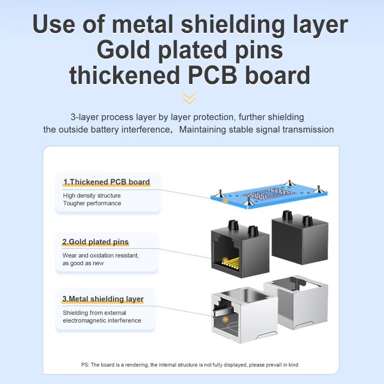 6. Adopts metal shielding layer, gold-plated pins, and thickened PCB board