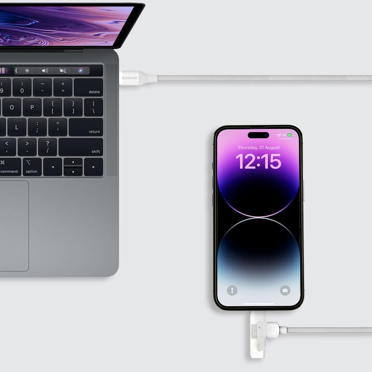 MOMAX DL56 1-Link Flow 60W Type-C to Type-C and 8 Pin Fast Charging Cable, Length:1.5m(White)