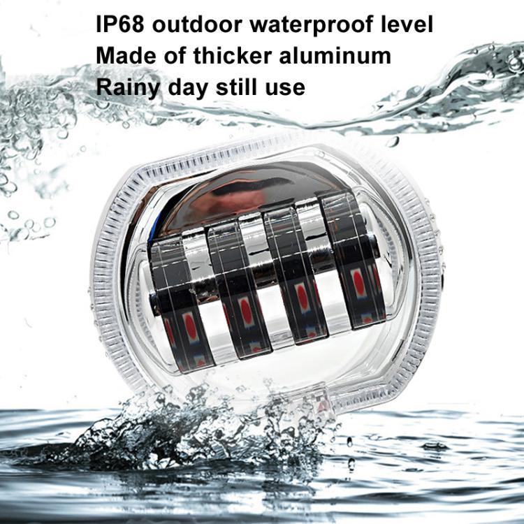 Motorcycle Electric Vehicle General Modification LED Headlight 4 Beads Double Lens Lamps, Style: Yellow Aperture+Red Devil Eye