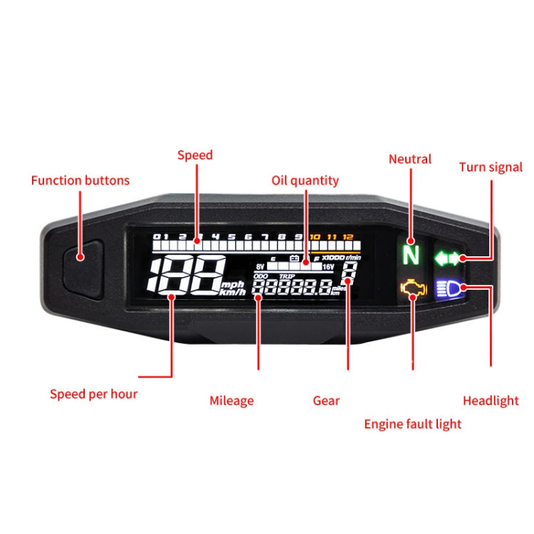 Motorcycle HD LCD Fuel Level Speed Electronic Instrument