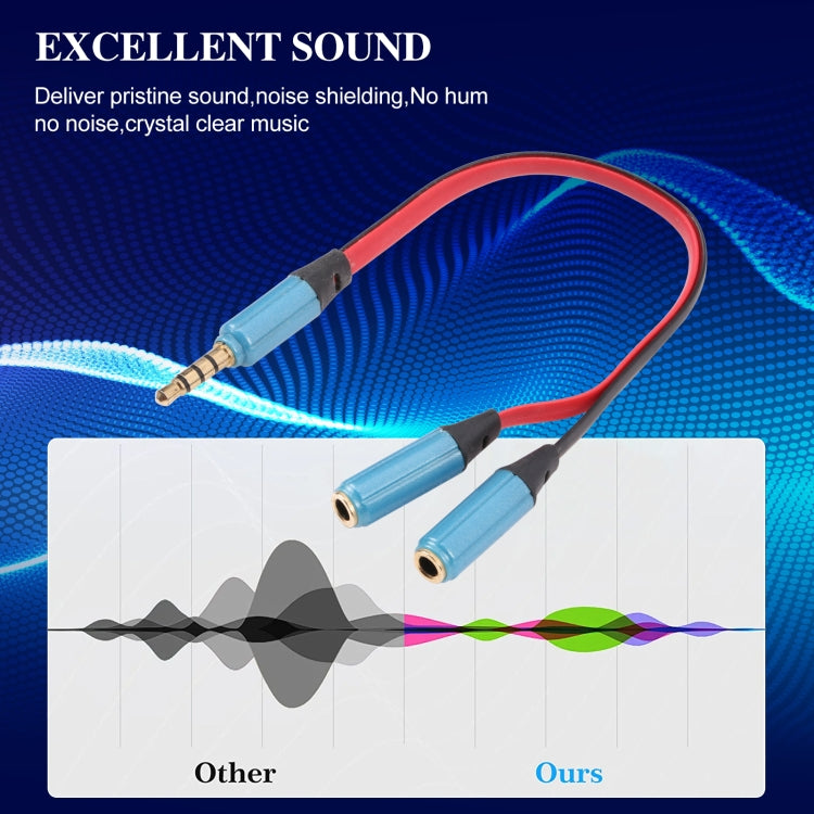 Noodle Style Aux Audio Cable 3.5mm Male to 2 x Female Splitter Connector, Compatible with Phones, Tablets, Headphones, MP3 Player, Car/Home Stereo & More(Blue)