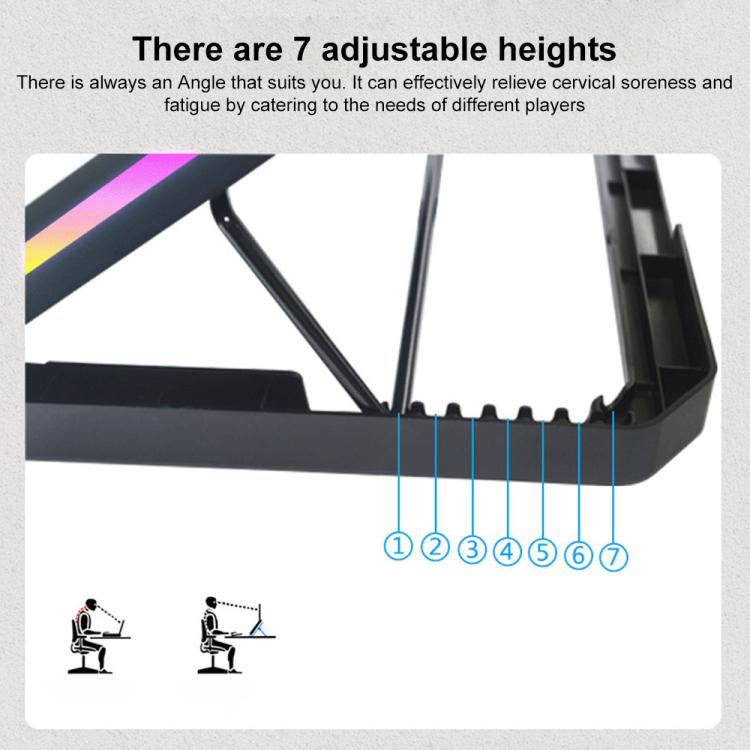 NUOXI YL-018 5-Core Fans Ultra-quiet Laptop Cooler RGB Light Cooling Holder(Black)