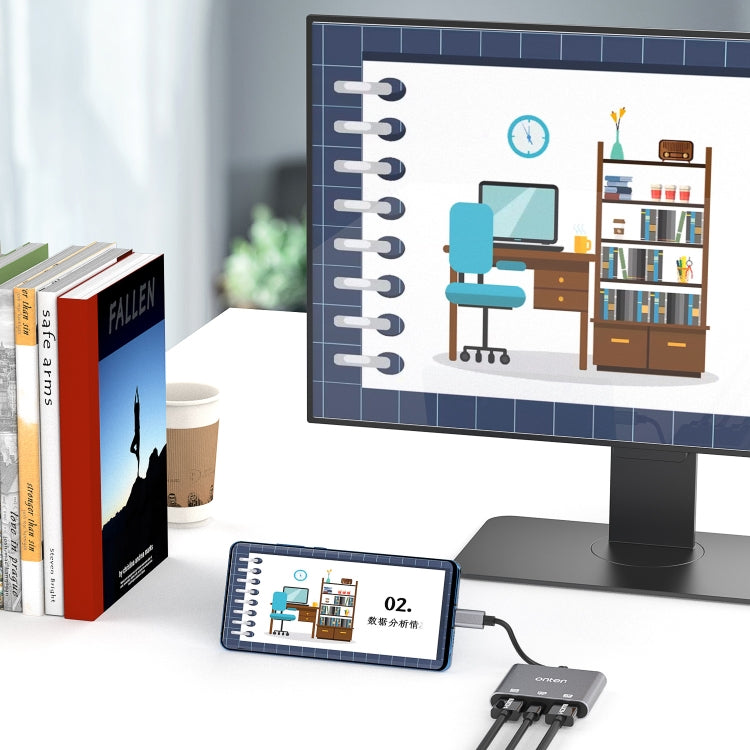 Onten 9175S 3 in 1 USB-C / Type-C to HDMI Adapter(Grey)