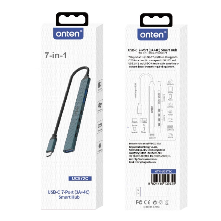 Onten UC972C 7 in 1 USB-C / Type-C to USB3.0 + USB2.0x2 + Type-Cx4 HUB Docking Station(Pine Green)