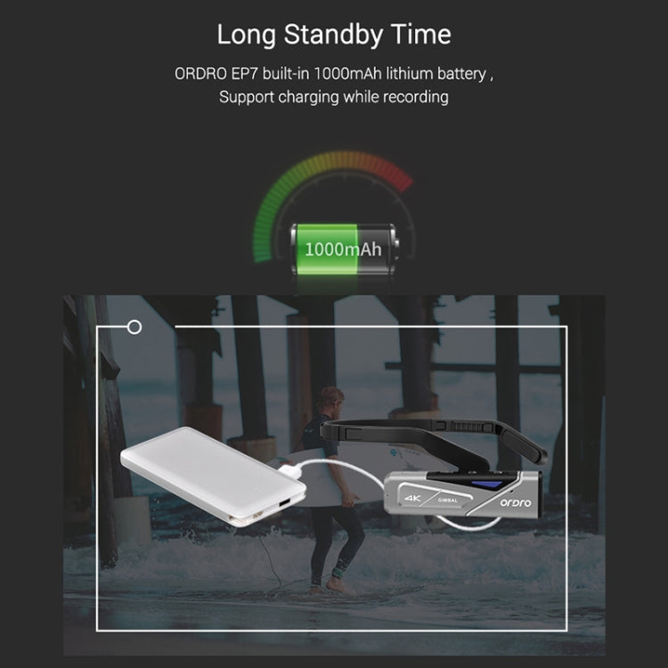 ORDRO EP7 4K Head-Mounted Auto Focus Live Video Smart Sports Camera, Style:Without Remote Control(Silver Black)