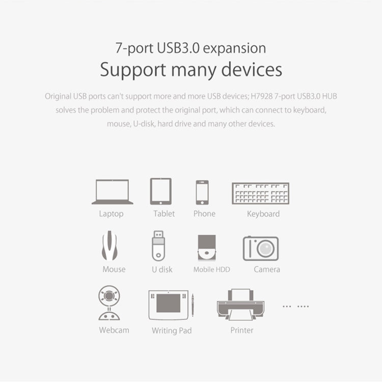 ORICO H7928-U3 ABS Material Desktop 7 Ports USB 3.0 HUB with 1m Cable(Black)