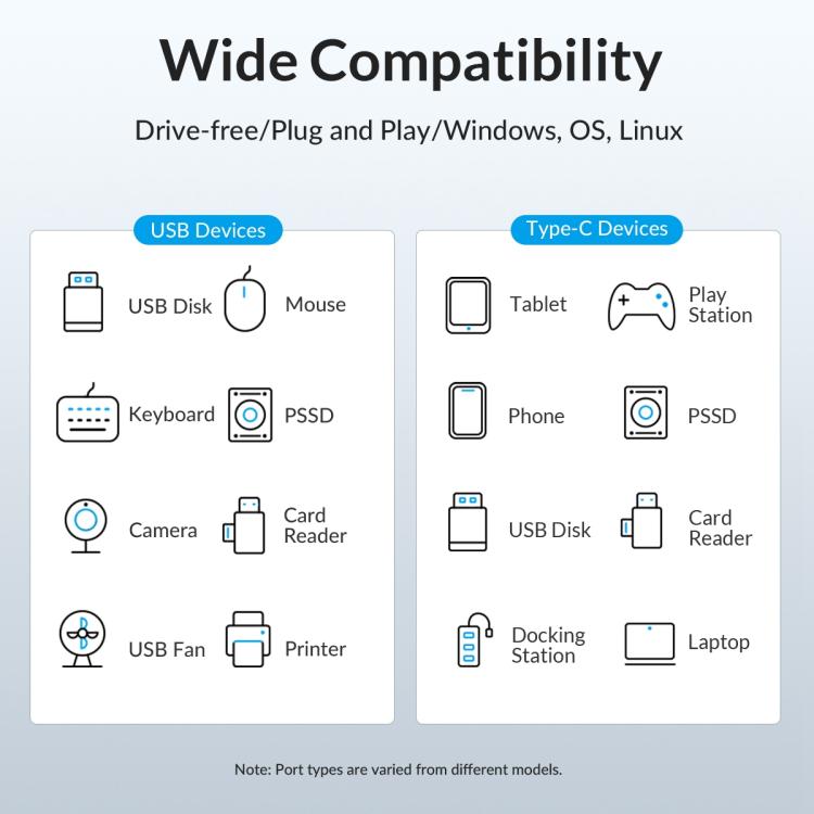 16. Dual USB and Type-C port expansion, suitable for various devices