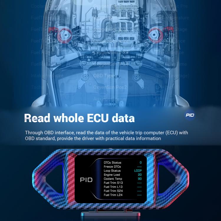 P26 Car HUD Head-Up Display Multi-function LCD OBD Smart Gauge Slope Meter Accelerometer(Carbon Fiber Texture)