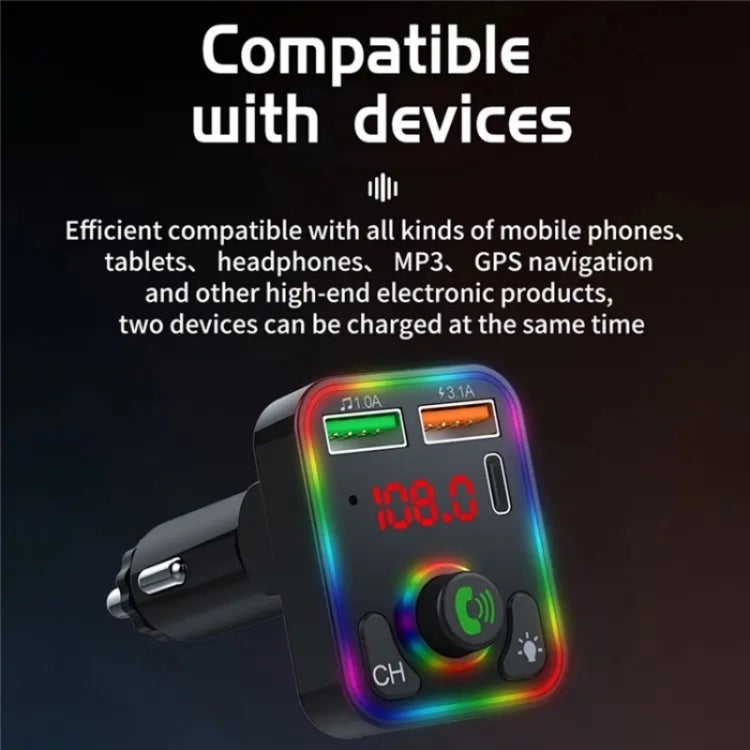P3 Car Bluetooth Hands-Free AUX Audio Car MP3 Player FM Transmitter PD Fast Charger