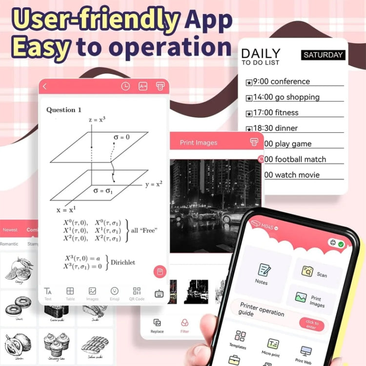 4. Smart application - Phomemo M04S mini thermal printer is compatible with mobile phones and tablets. Download Phomemo APP and connect Phomemo M04S mini thermal printer through APP.