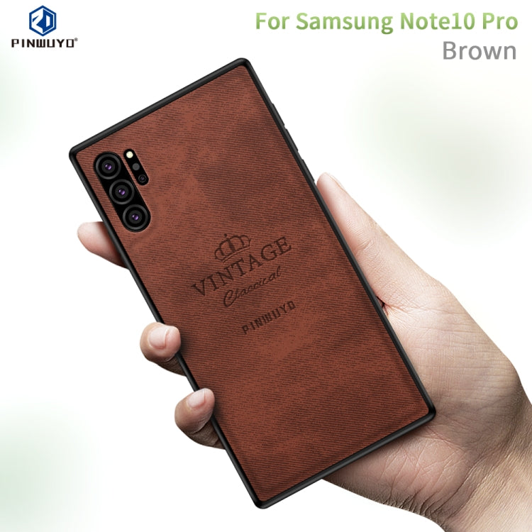 PINWUYO Shockproof Waterproof Full Coverage PC + TPU + Skin Protective Case for Galaxy Note10+(Brown)