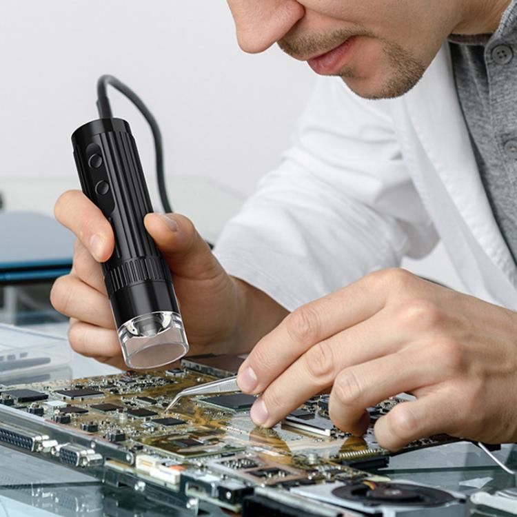 Portable 200W Pixel 1000X HD Wireless Digital Microscope(Black With Holder)