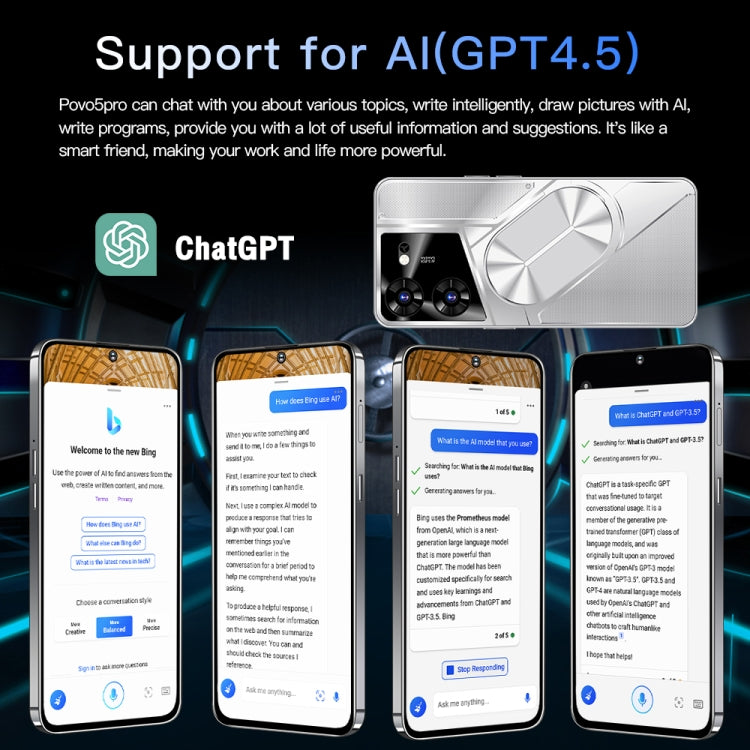 Povo5pro / PU31, 3GB+32GB, 6.53 inch Face Identification Android 8.1 MTK6753 Octa Core, Network: 4G, AI GPT4, Dual SIM(Silver)