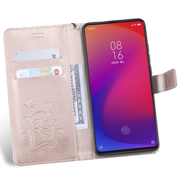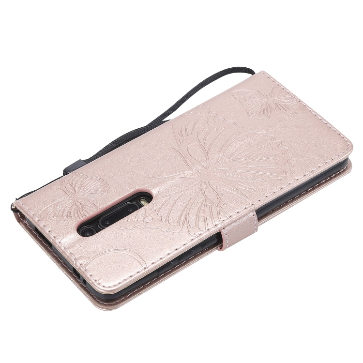 Pressed Printing Butterfly Pattern Horizontal Flip PU Leather Case with Holder & Card Slots & Wallet & Lanyard For Xiaomi Mi 9T & Mi 9T Pro & Redmi K20 & K20 Pro(Rose Gold)